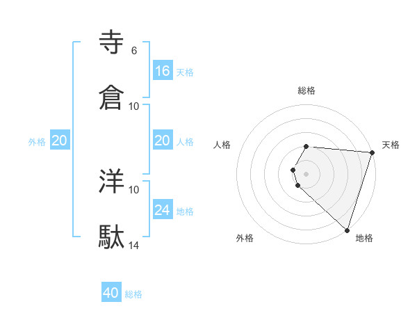 寺倉 洋駄さんの総格は40画の2点!
