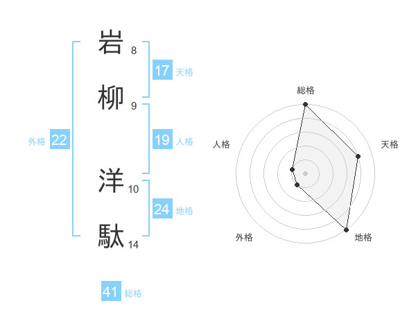 岩柳 洋駄さんの総格は41画の5点!