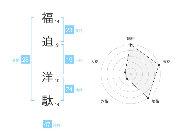 福迫 洋駄さんを姓名の画数から五運を鑑定