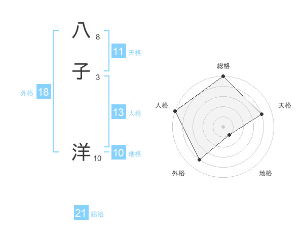 八子 洋さんの総格は21画の5点!