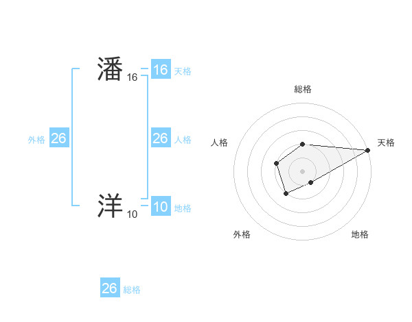 潘 洋さんの総格は26画の2点!