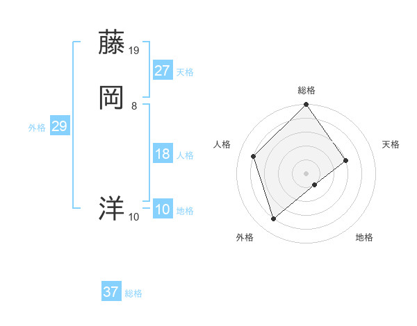 藤岡 洋さんの総格は37画の5点!
