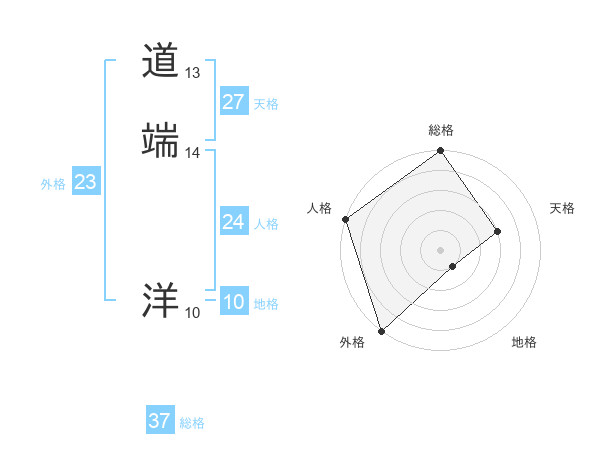 道端 洋さんの総格は37画の5点!