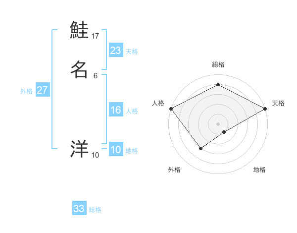 鮭名 洋さんを姓名の画数から五運を鑑定