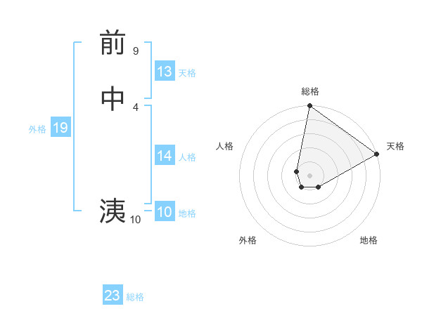 前中 洟さんの総格は23画の5点!