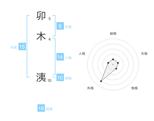 卯木 洟さんを姓名の画数から五運を鑑定