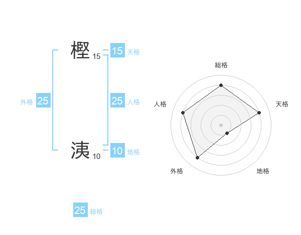 樫 洟さんの外格は25画の4点!