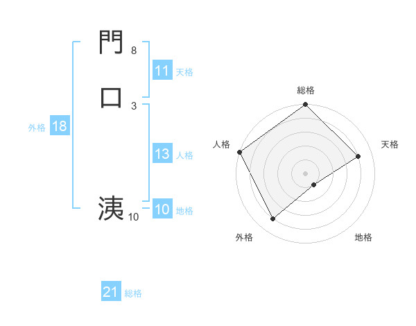 門口 洟さんの総格は21画の5点!