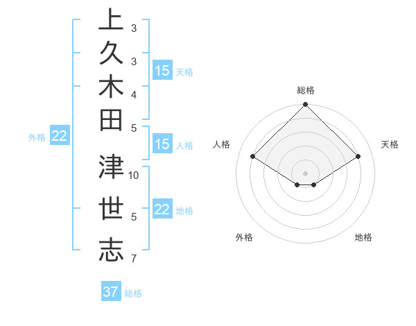 上久木田 津世志さんを姓名の画数から五運を鑑定