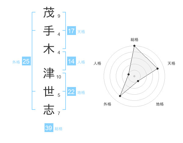 茂手木 津世志さんの天格は17画の4点!