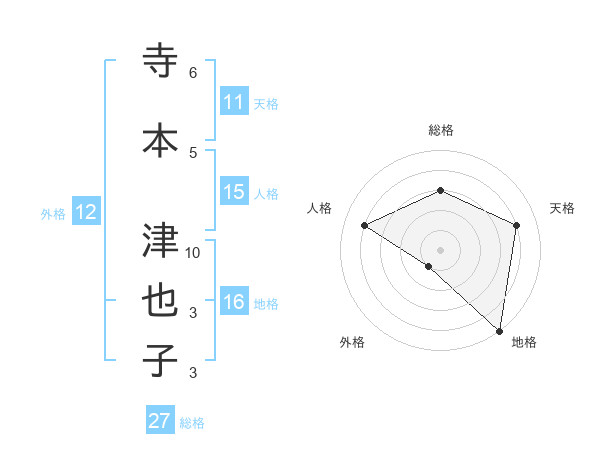 寺本 津也子さんの総格は27画の3点!