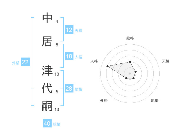中居 津代嗣さんの天格は12画の1点!