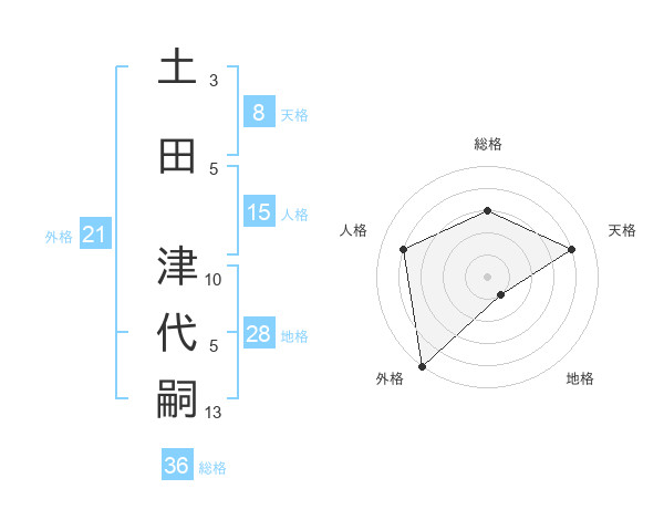 土田 津代嗣さんを姓名の画数から五運を鑑定