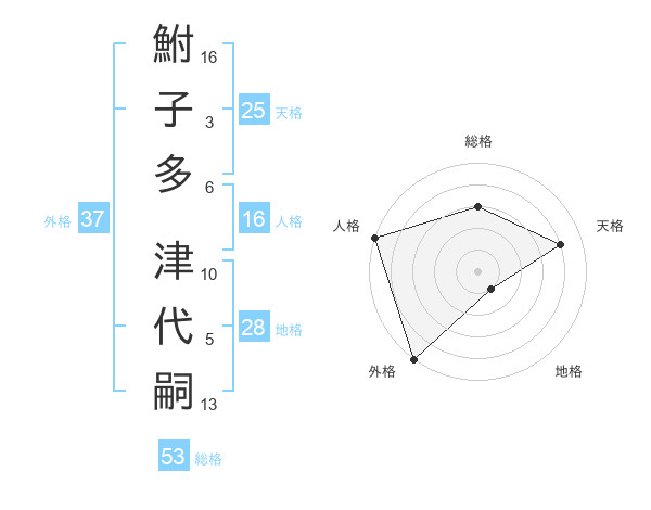 鮒子多 津代嗣さんの総格は53画の3点!