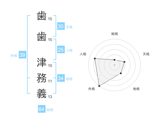 歯歯 津務義さんを姓名の画数から五運を鑑定