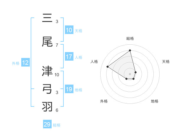 三尾 津弓羽さんを姓名の画数から五運を鑑定