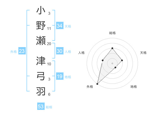 小野瀬 津弓羽さんを姓名の画数から五運を鑑定
