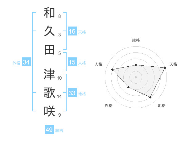 和久田 津歌咲さんの天格は16画の5点