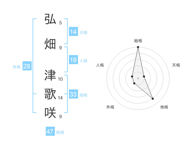 弘畑 津歌咲さんを姓名の画数から五運を鑑定