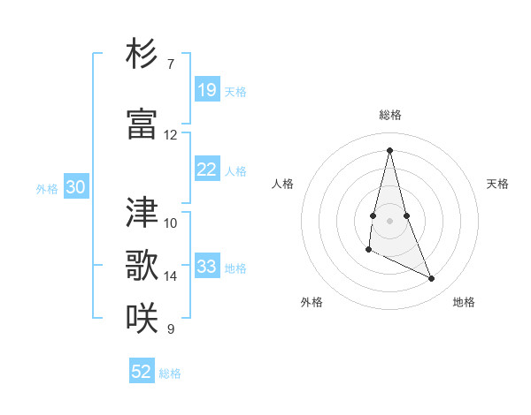 杉富 津歌咲さんの総格は52画の4点!