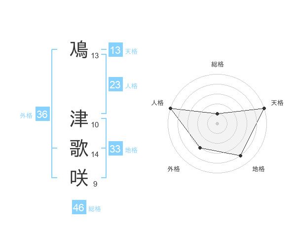 鳰 津歌咲さんを姓名の画数から五運を鑑定