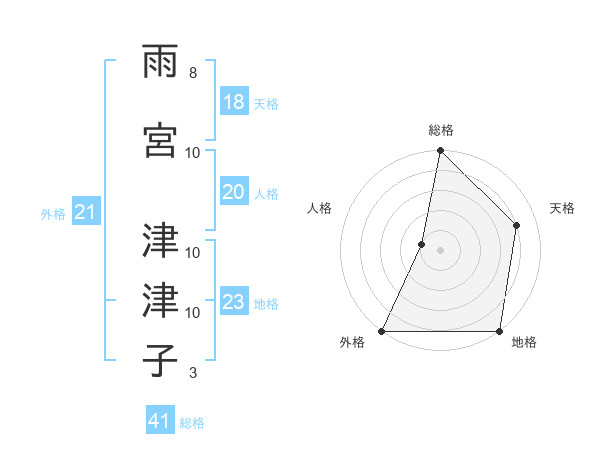 雨宮 津津子さんを姓名の画数から五運を鑑定