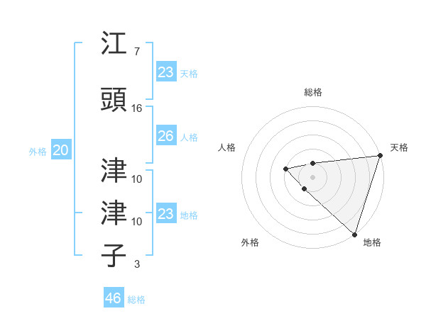 江頭 津津子さんの天格は23画の5点!