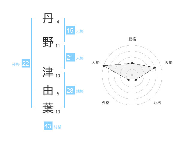 丹野 津由葉さんを姓名の画数から五運を鑑定