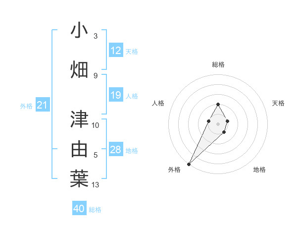 小畑 津由葉さんを姓名の画数から五運を鑑定
