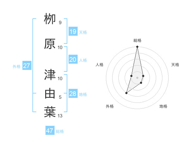 栁原 津由葉さんの総格は47画の5点!