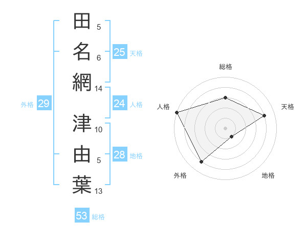 田名網 津由葉さんの外格は29画の4点