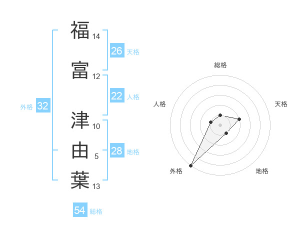 福富 津由葉さんを姓名の画数から五運を鑑定