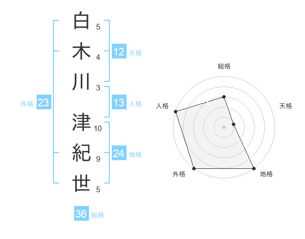 白木川 津紀世さんを姓名の画数から五運を鑑定