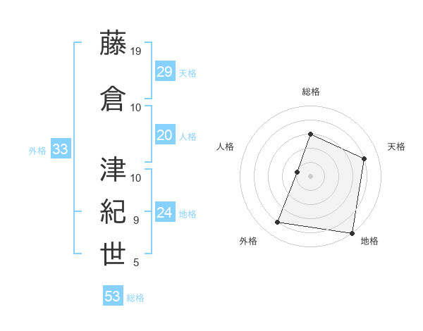 藤倉 津紀世さんを姓名の画数から五運を鑑定