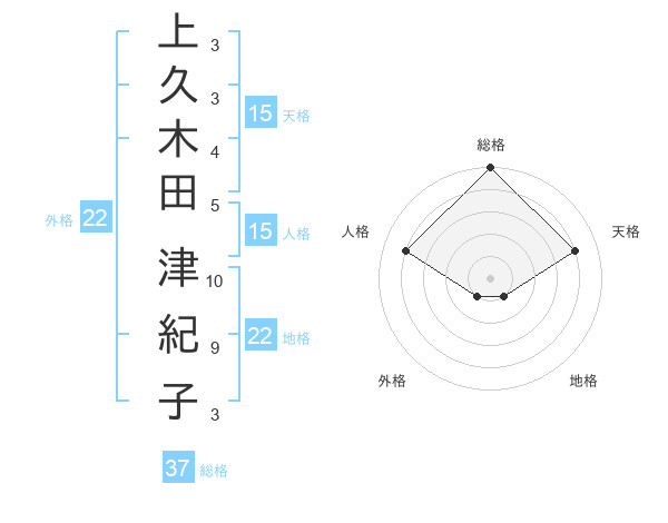 上久木田 津紀子さんを姓名の画数から五運を鑑定