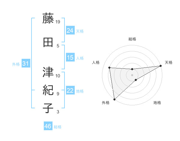 藤田 津紀子さんを姓名の画数から五運を鑑定