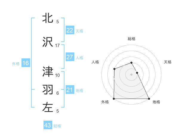 北沢 津羽左さんの地格は21画の5点!
