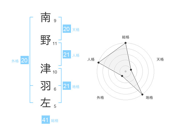 南野 津羽左さんを姓名の画数から五運を鑑定