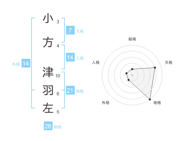 小方 津羽左さんの総格は28画の1点!