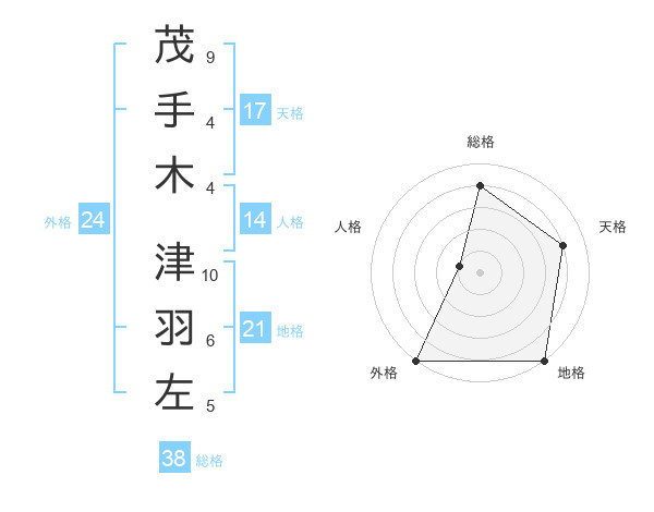茂手木 津羽左さんを姓名の画数から五運を鑑定