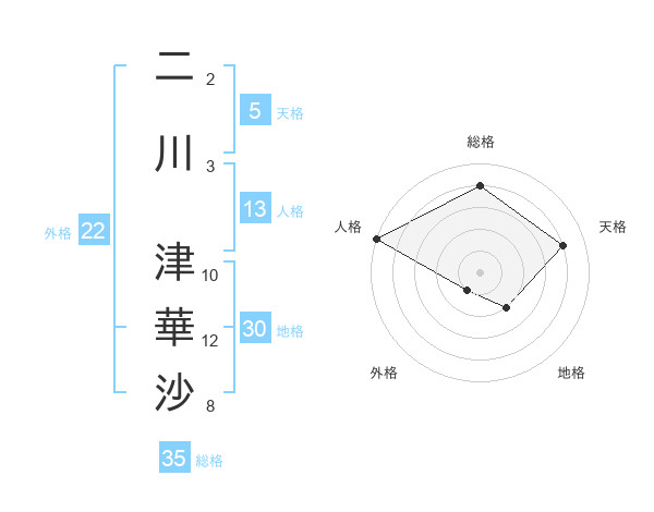 二川 津華沙さんを姓名の画数から五運を鑑定