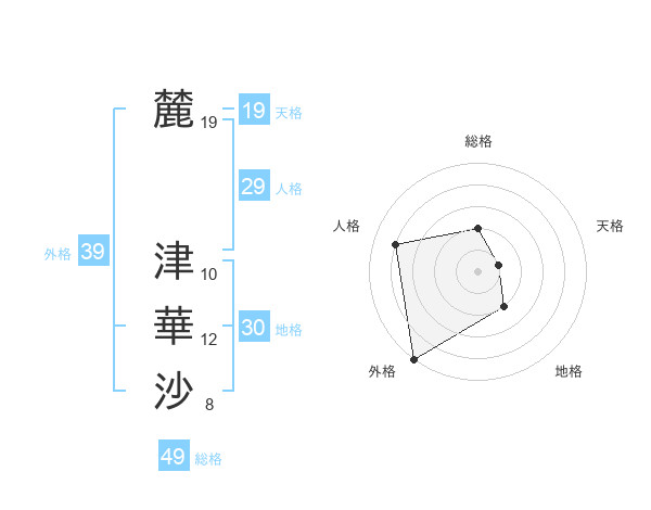 麓 津華沙さんを姓名の画数から五運を鑑定