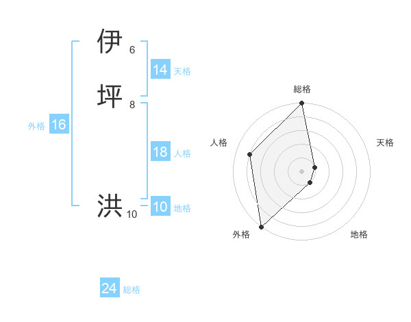 伊坪 洪さんを姓名の画数から五運を鑑定