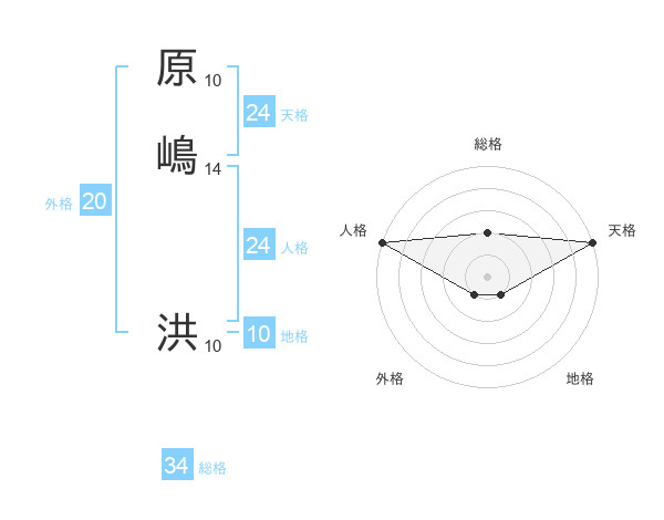 原嶋 洪さんの天格は24画の5点!
