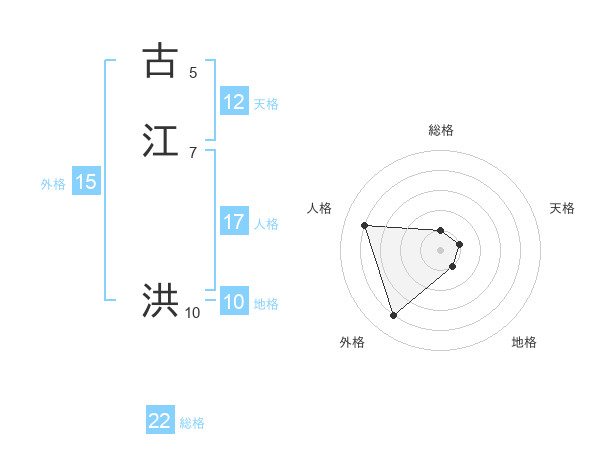 古江 洪さんを姓名の画数から五運を鑑定