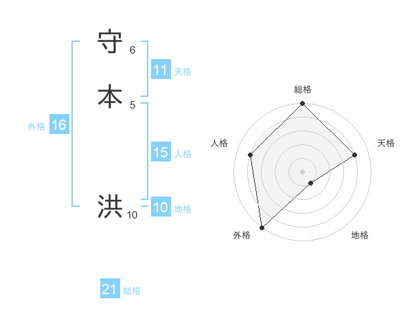 守本 洪さんの総格は21画の5点!