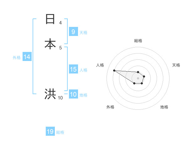 日本 洪さんの総格は19画の1点!