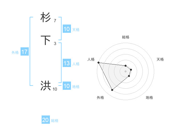 杉下 洪さんの総格は20画の1点!
