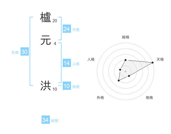櫨元 洪さんの天格は24画の5点!