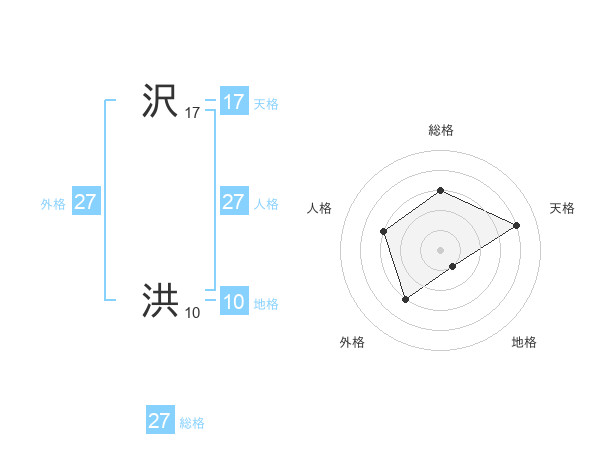 沢 洪さんの総格は27画の3点